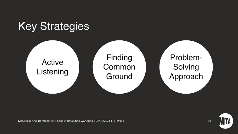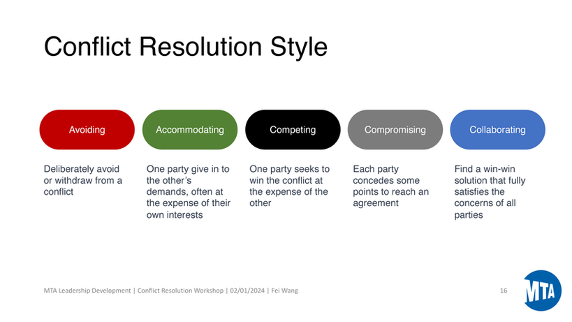 The "Conflict Resolution 101" workshop aimed at MTA New York City Transit, has gained great feedback from the instructional design and training community. Designed to enhance leadership and operational efficiency, the workshop equips frontline supervisors with cutting-edge conflict management strategies.